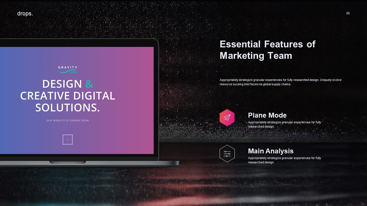 适用于各种主题的多用途PPT模板,创意多样化的图文排版、商务化的设计风格、简洁清晰的结构、附加各类分析图表、地图,可编辑矢量图标,可应用于各种演讲场合。